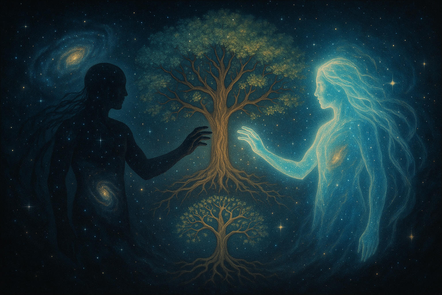 We are the source experiencing itself... the everything and the void meeting, dividing, and merging again. Light and dark are not enemies, but lovers creating this reality together.