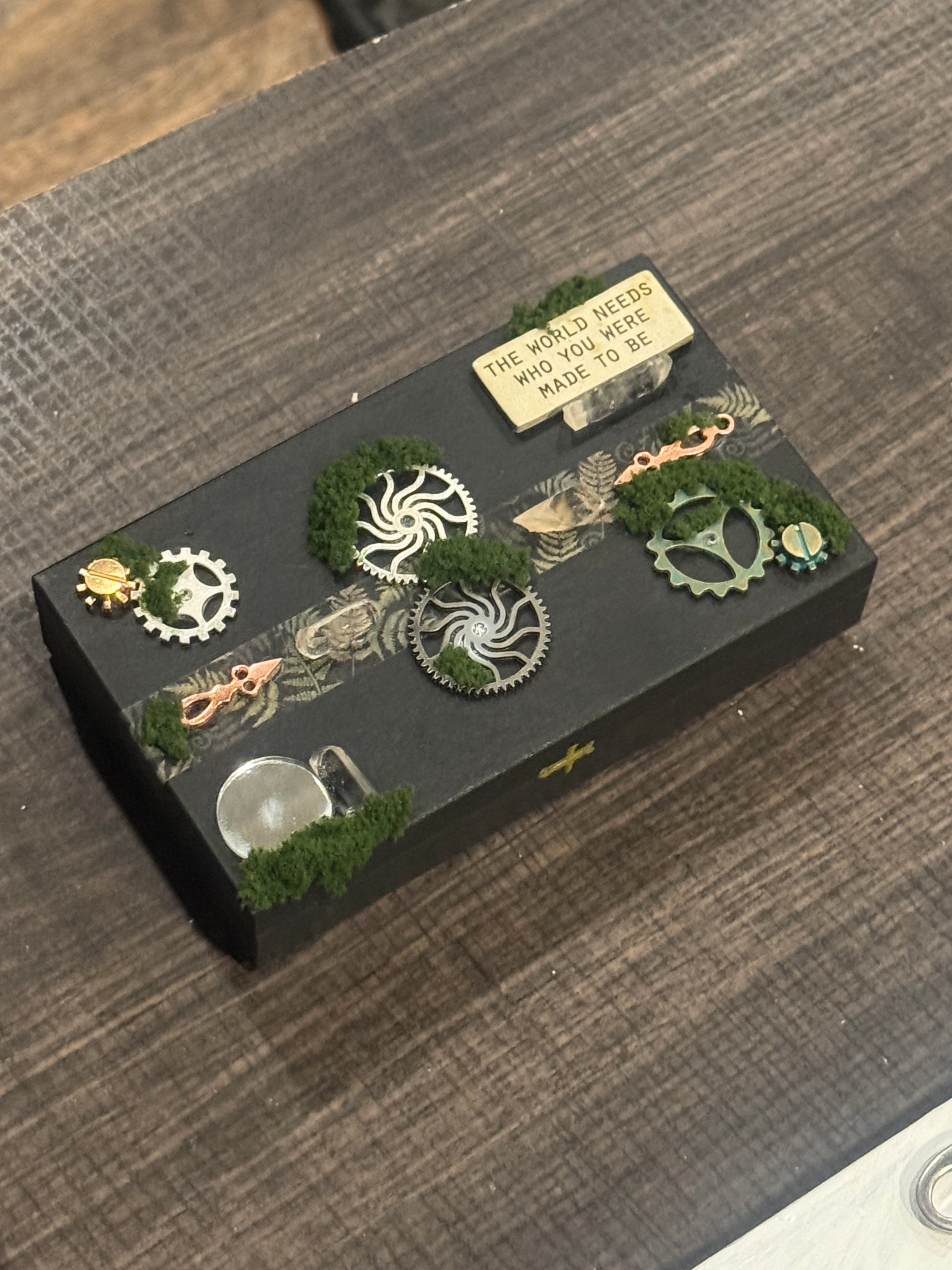 Reclamation - represents the return to what is natural and alive beneath conditioning. The gears symbolize systems and patterns that once served a purpose, while moss reflects life quietly reclaiming space where rigidity once dominated.