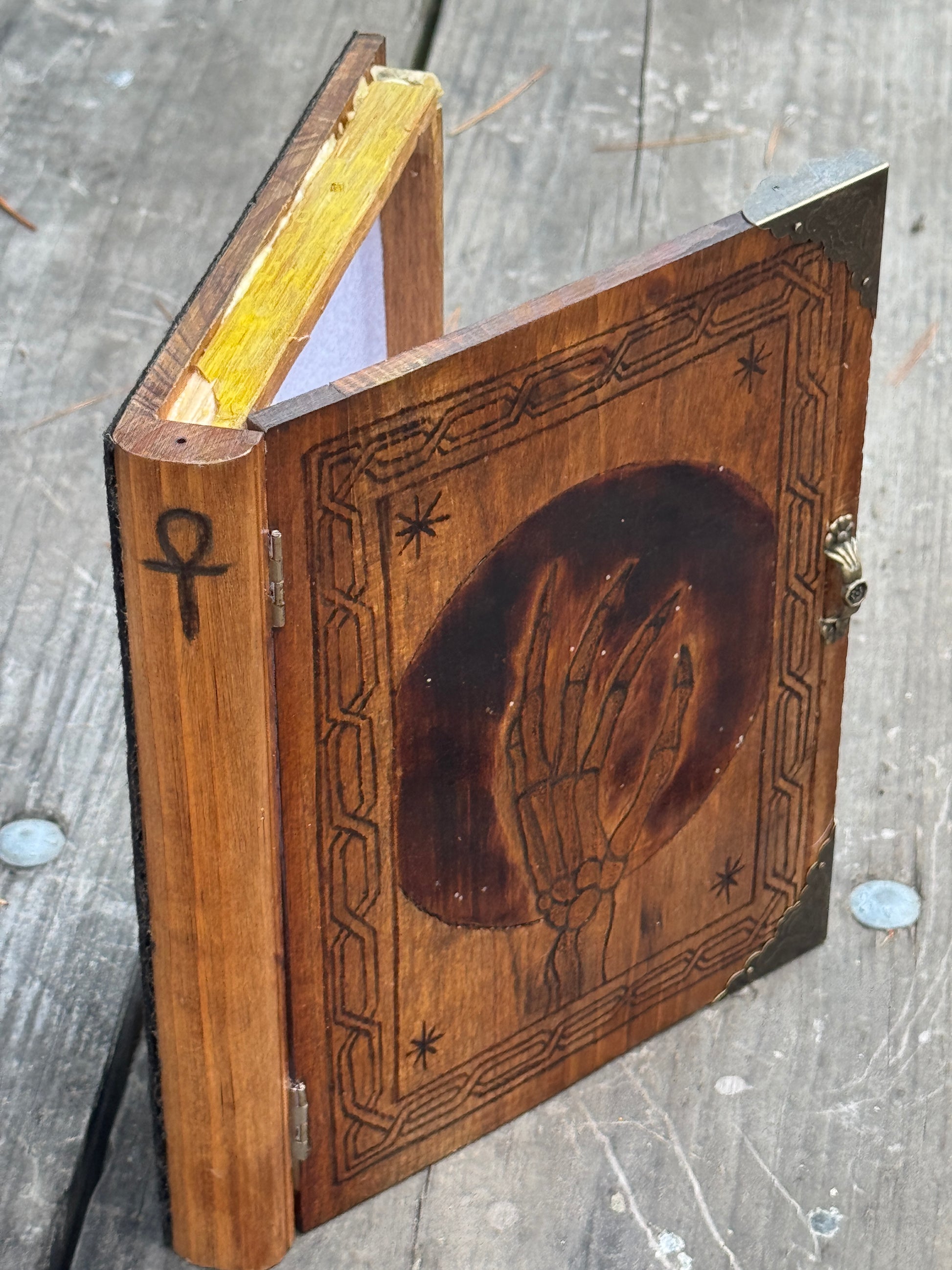 Notice how the pages of this case carry two hand mined crystal quartz stones. What could be the significance of that?